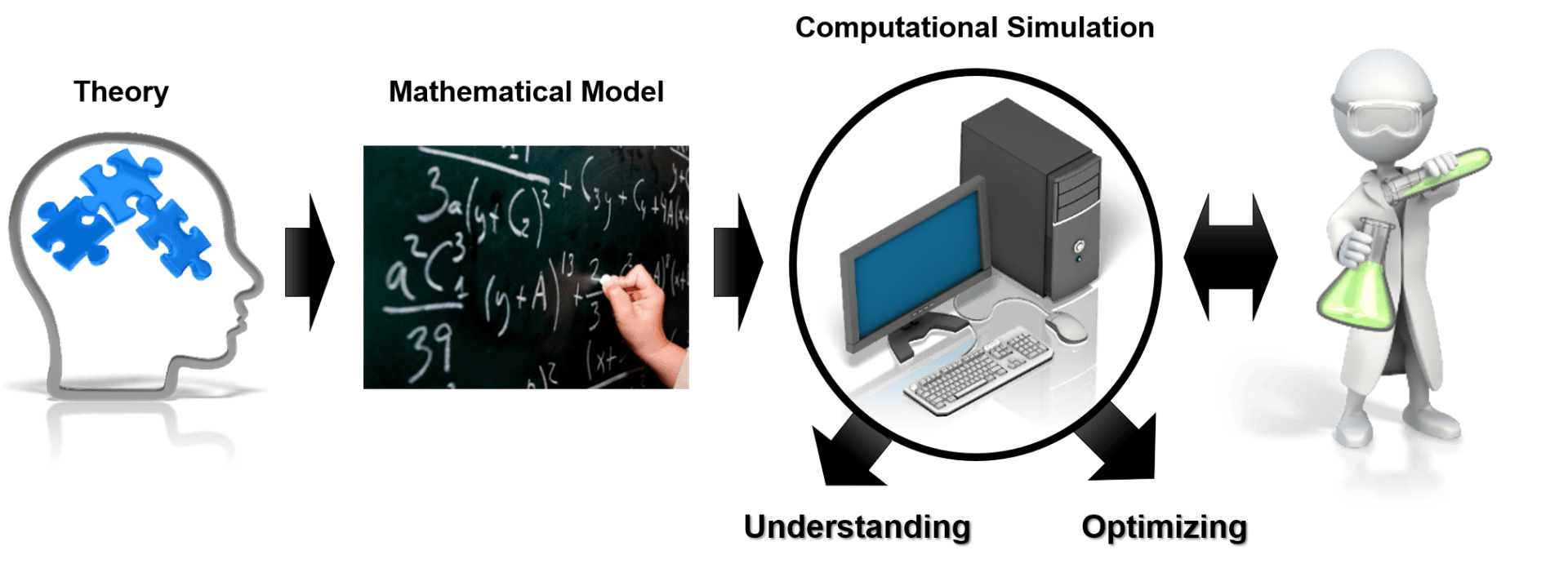 Prof. Franco's group research paradigm consists at first designing theories aiming at explaining experimental observations by describing the operation principles of electrochemical energy devices. These theories are then translated in terms of mathematical equations, frequently too complex to be solved by hand. Then, the equations are implemented in computer programs (models) allowing to solve them and to simulate the behavior of materials, interfaces, components and electrochemical cells. The simulations results are systematically confronted with in house